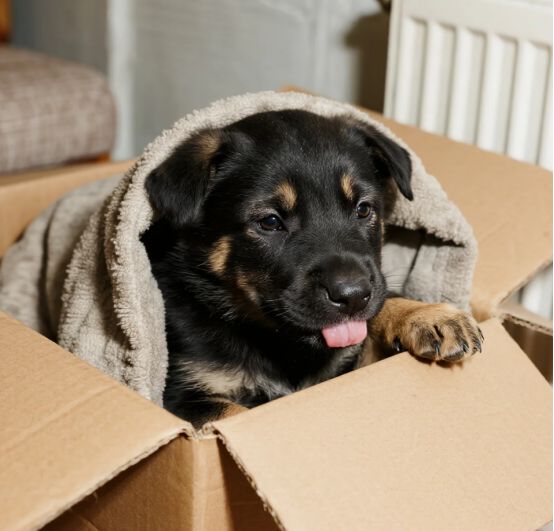 那是个刚满月的小德牧,黑黢黢的一小团,眼睛还没完全睁开,被人装在一个纸箱子里,冻得瑟瑟发抖。